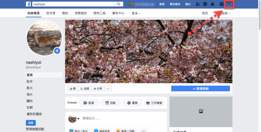 進入Facebook點選右上角的「▼」。