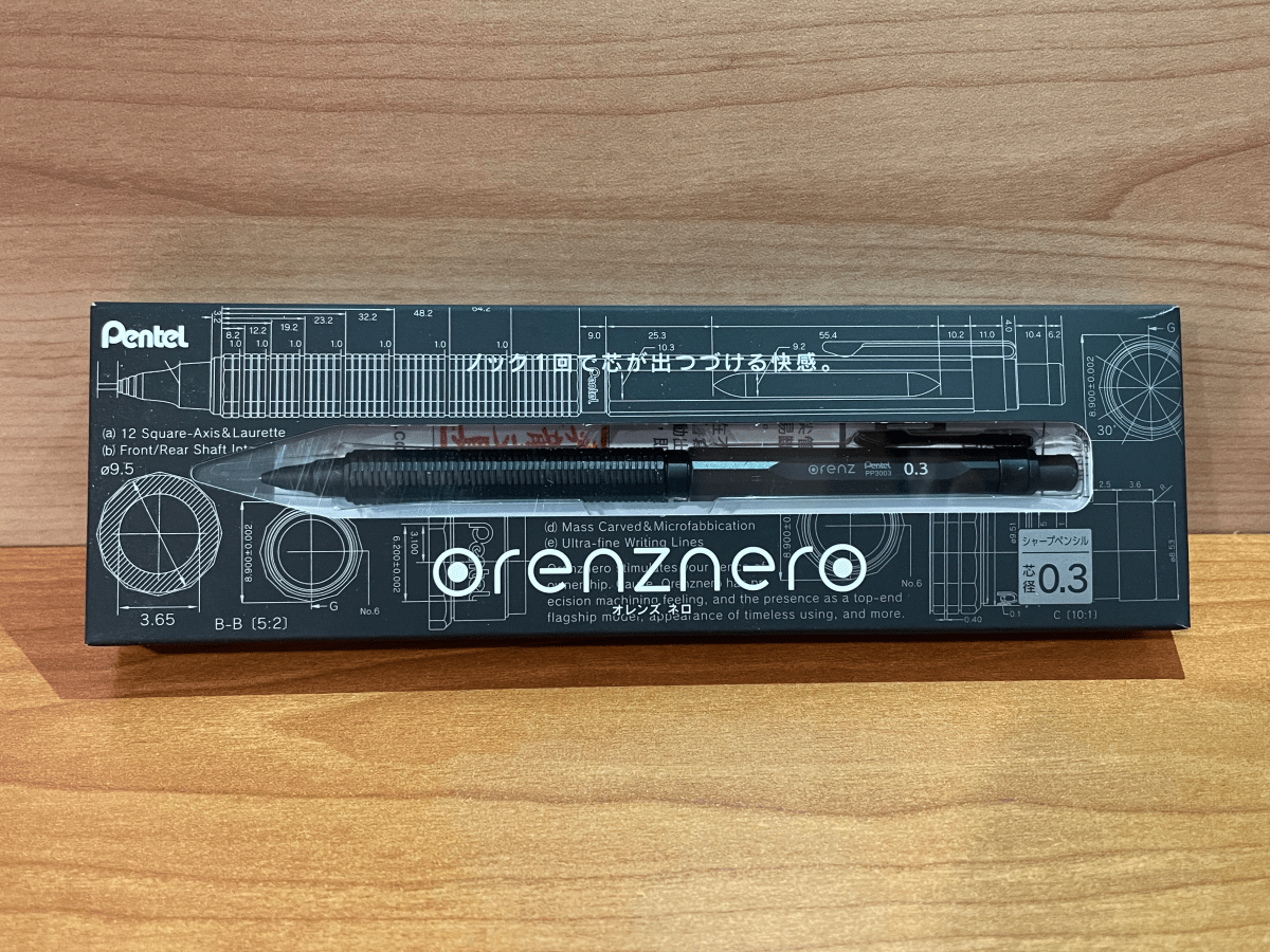 這次要開箱的是來自於 Pentel 的一支自動鉛筆 ORENZNERO 0.3mm,也是個人第一次購買 Pentel 的製圖鉛筆,之所以看上 ORENZNERO 就是因為機械式金屬的外觀及質感,實際拿在手上真的很好握,也有相當神奇的自動出芯功能。