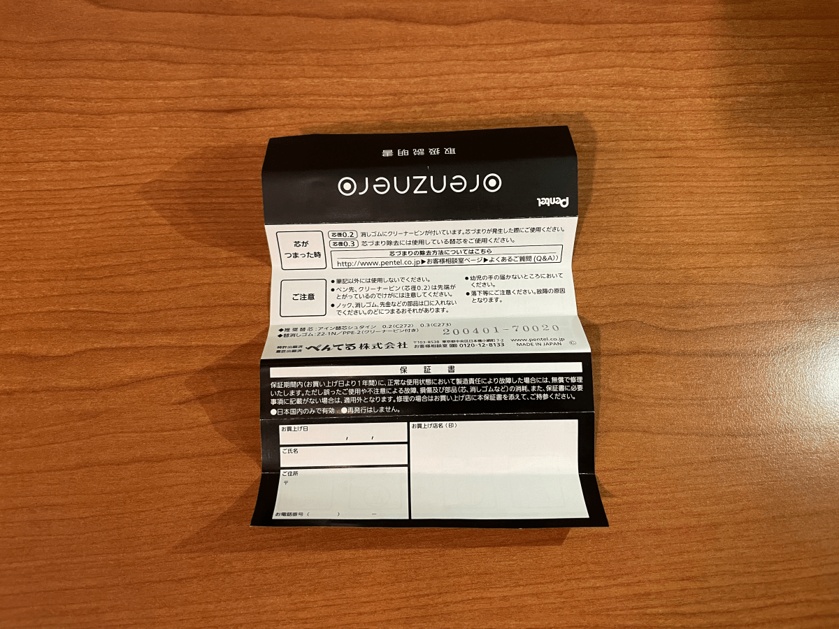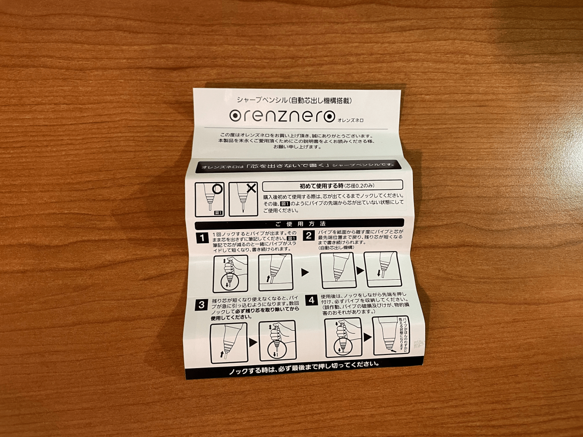 打開後分別有 ORENZNERO 0.3mm 筆和日文說明書。