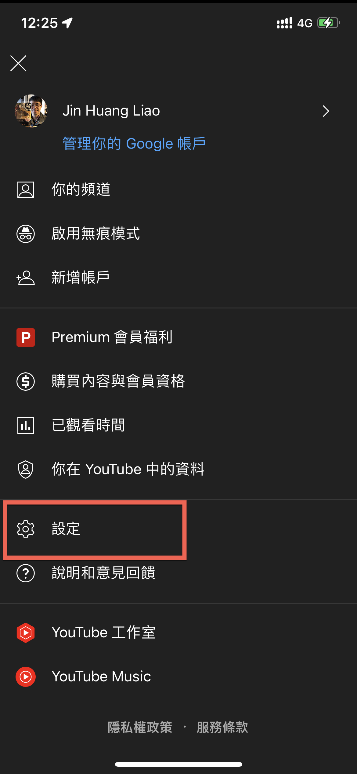 首先進入到 YouTube App 首頁,並點選右上角的頭像圖示,再點選【設定】進入。