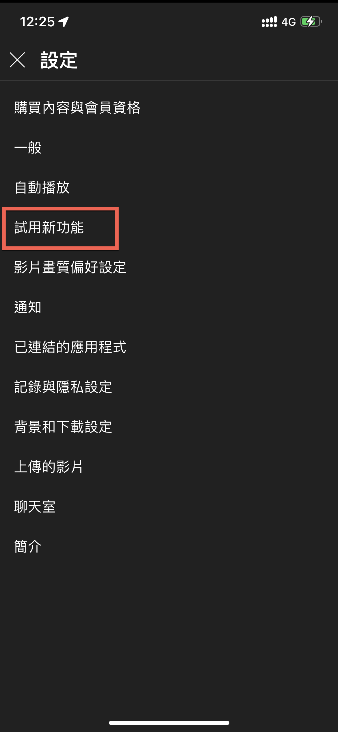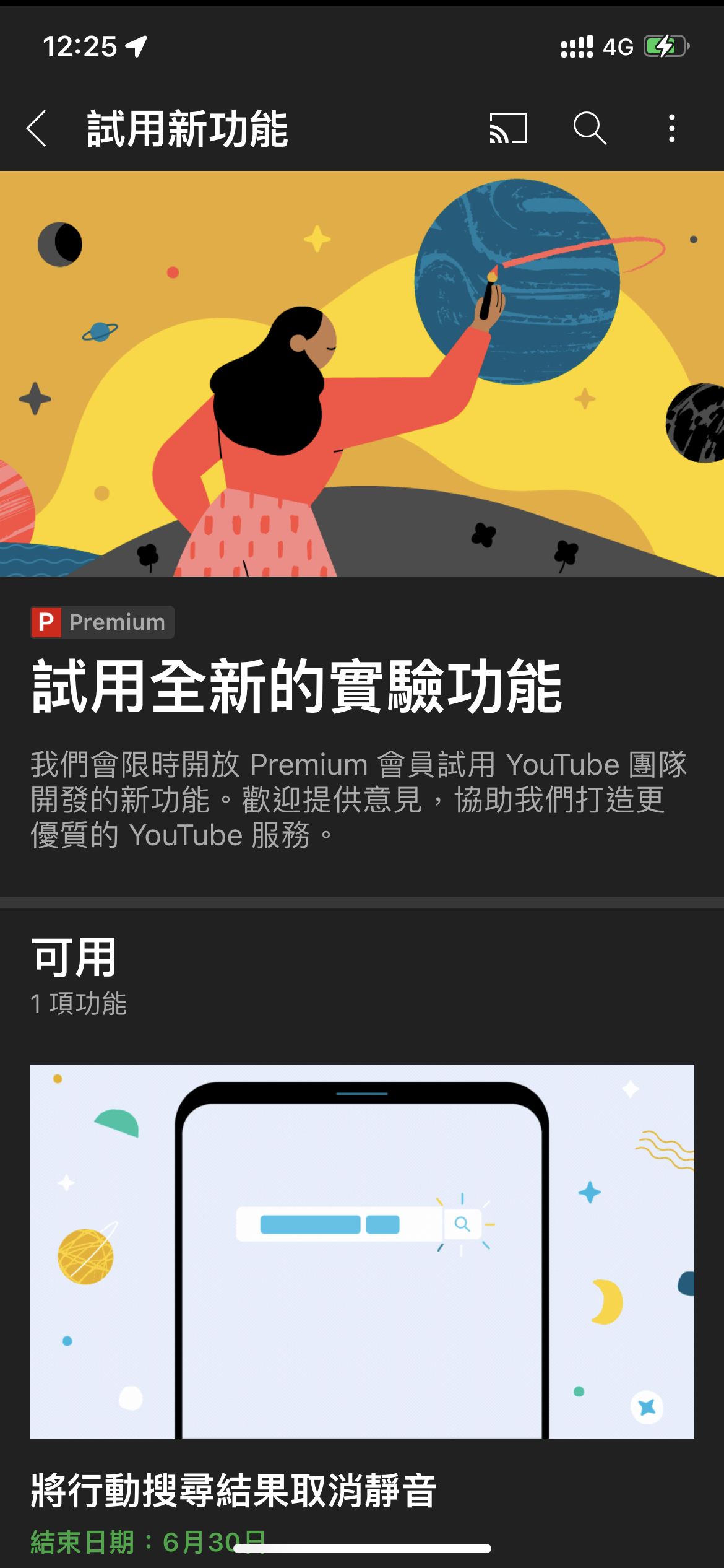 點選【試用新功能】,只適用於 YouTube Premium 使用者。