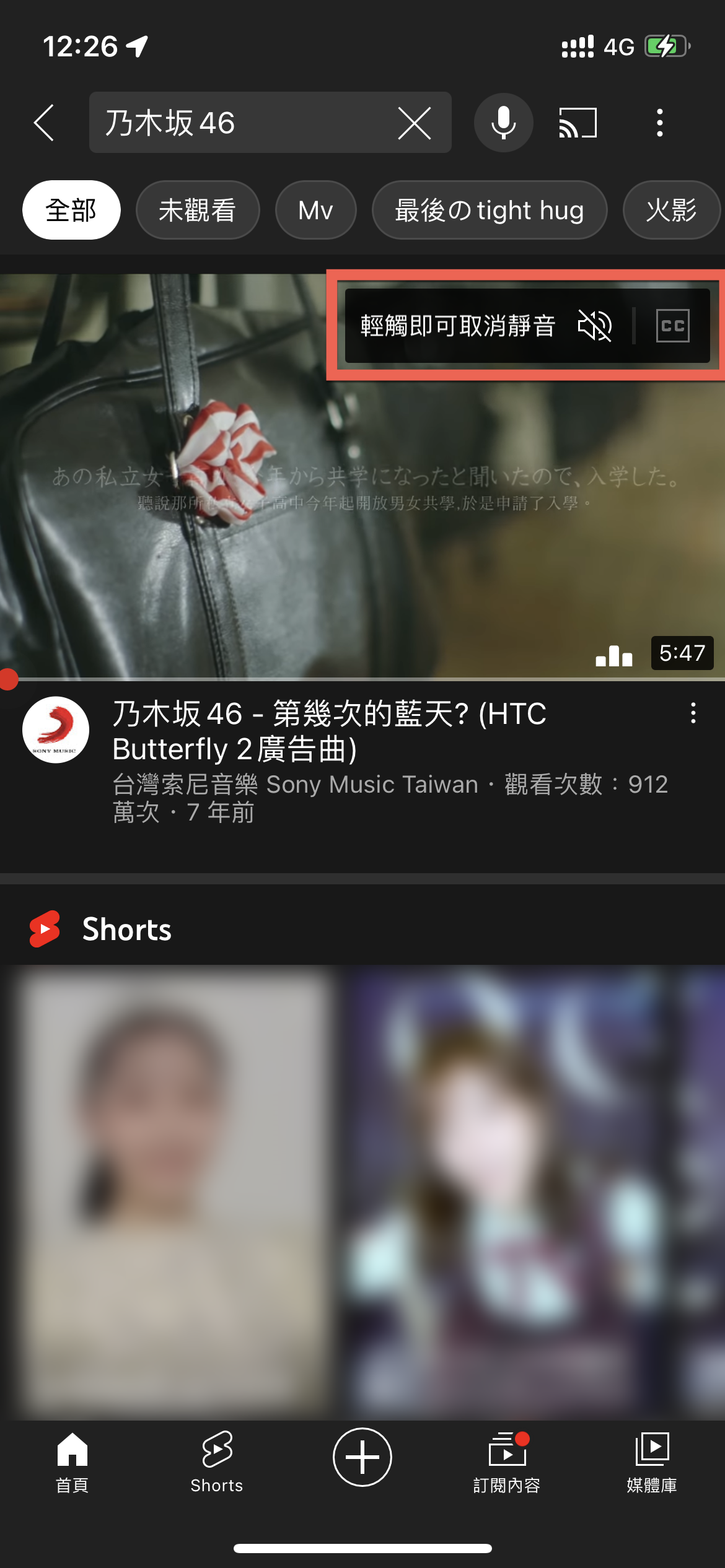 首頁自動預覽影片就能使用開啟及關閉聲音按鍵。