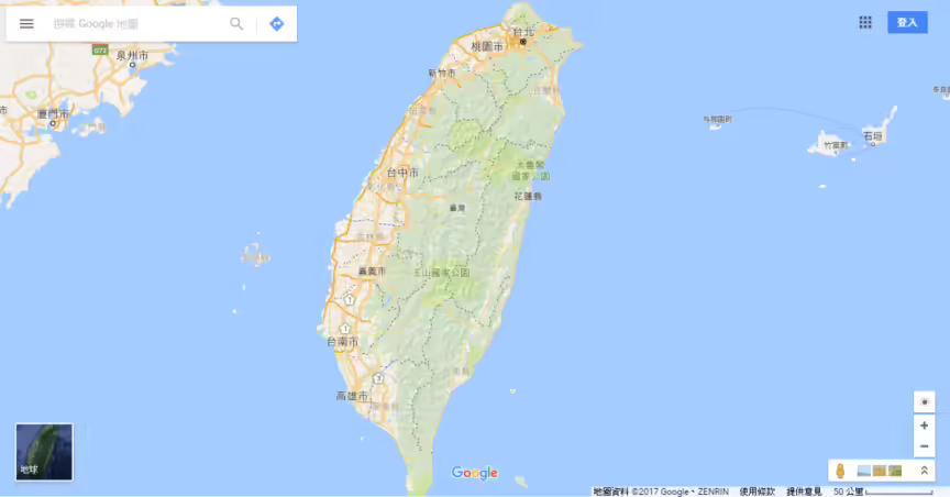 先進入到 Google Map 頁面裡,使用方式很簡單,只需要用滑鼠滾輪上下或者右下角【+】、【-】按扭來【放大】、【縮小】地圖,然後點選地標就行了。進一步需要仔細搜尋地標,接下來也會說明怎麼搜尋。