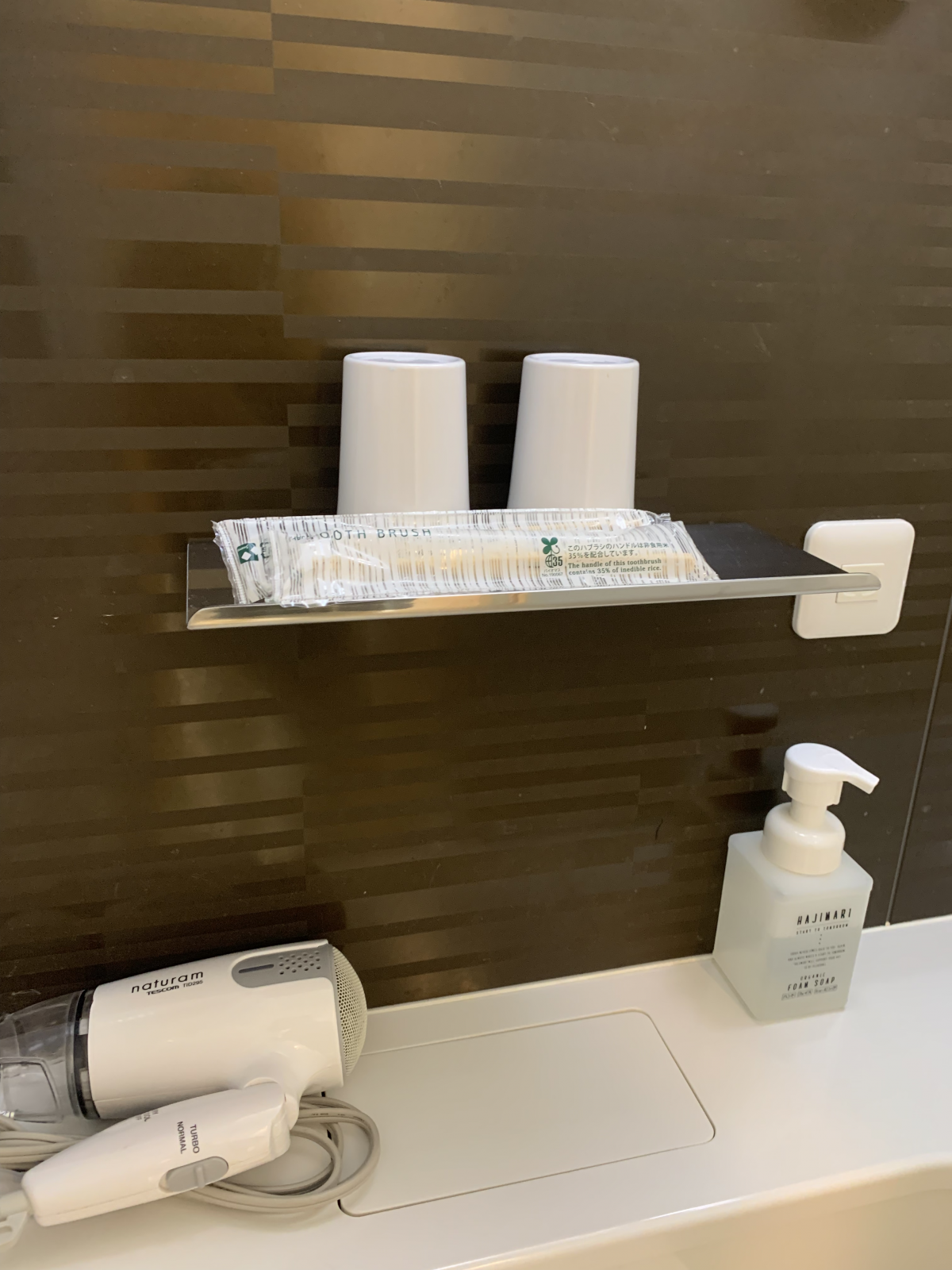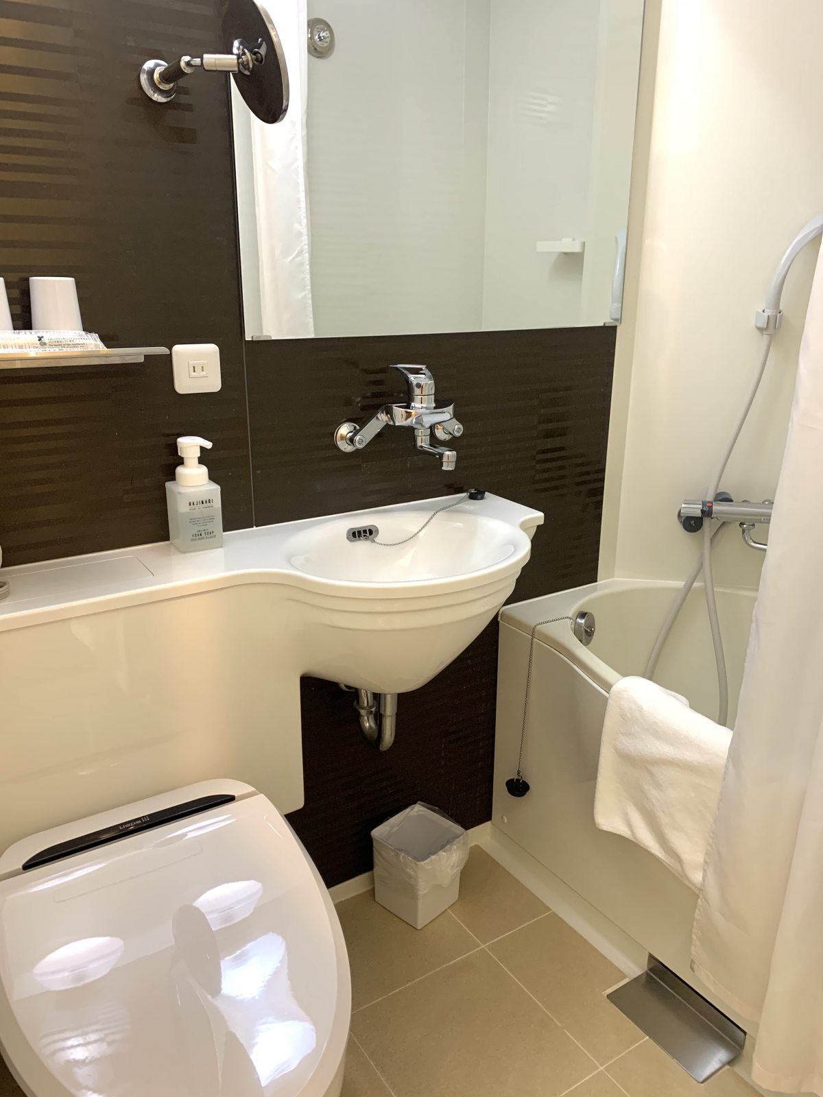 浴室就是日本很基本的一體成形浴室,該有的都有,很小就是了。浴室內有付牙刷、牙膏、杯子、洗手乳、沐浴乳、洗髮乳、潤髮乳、毛巾、大浴巾。