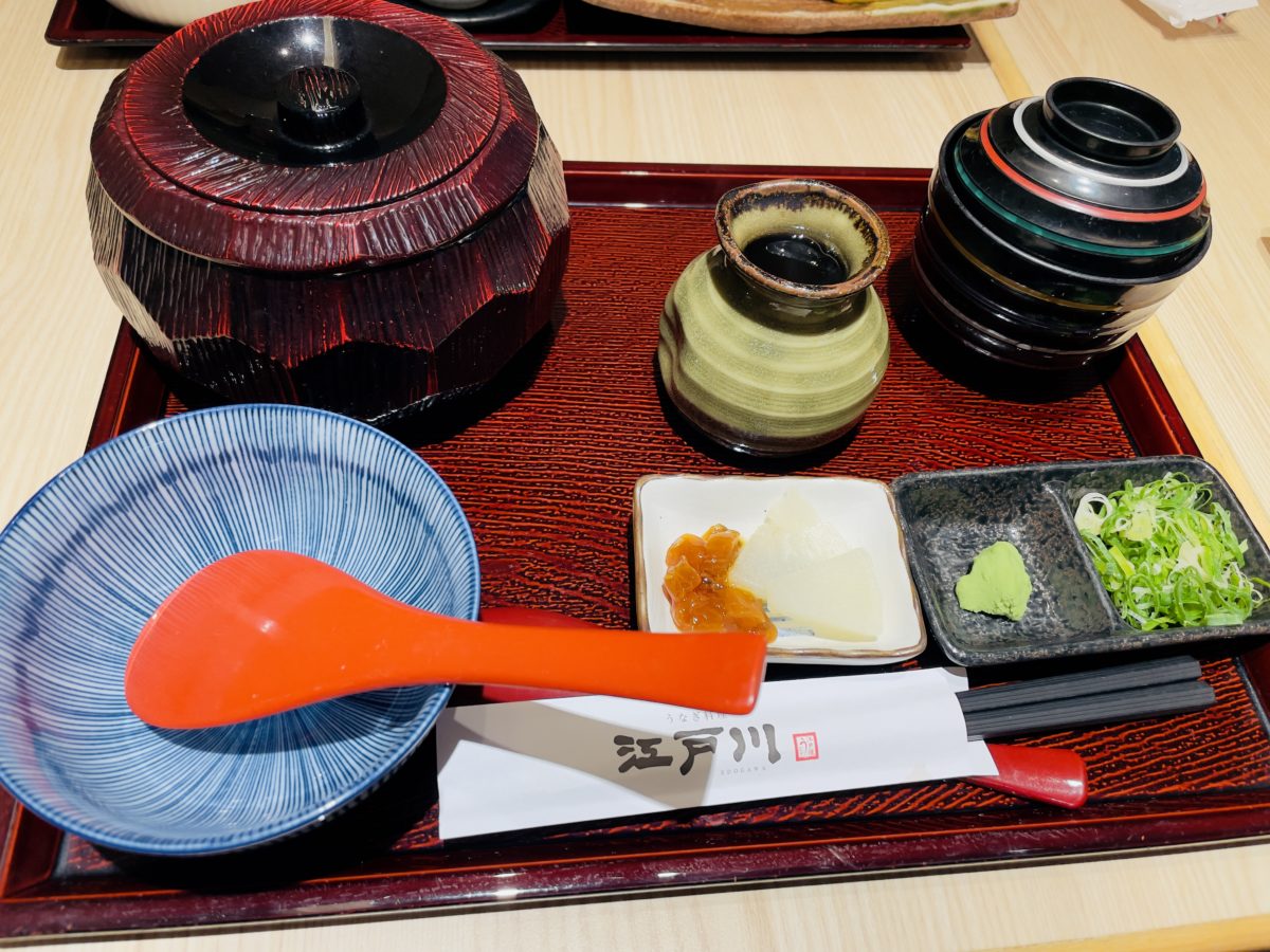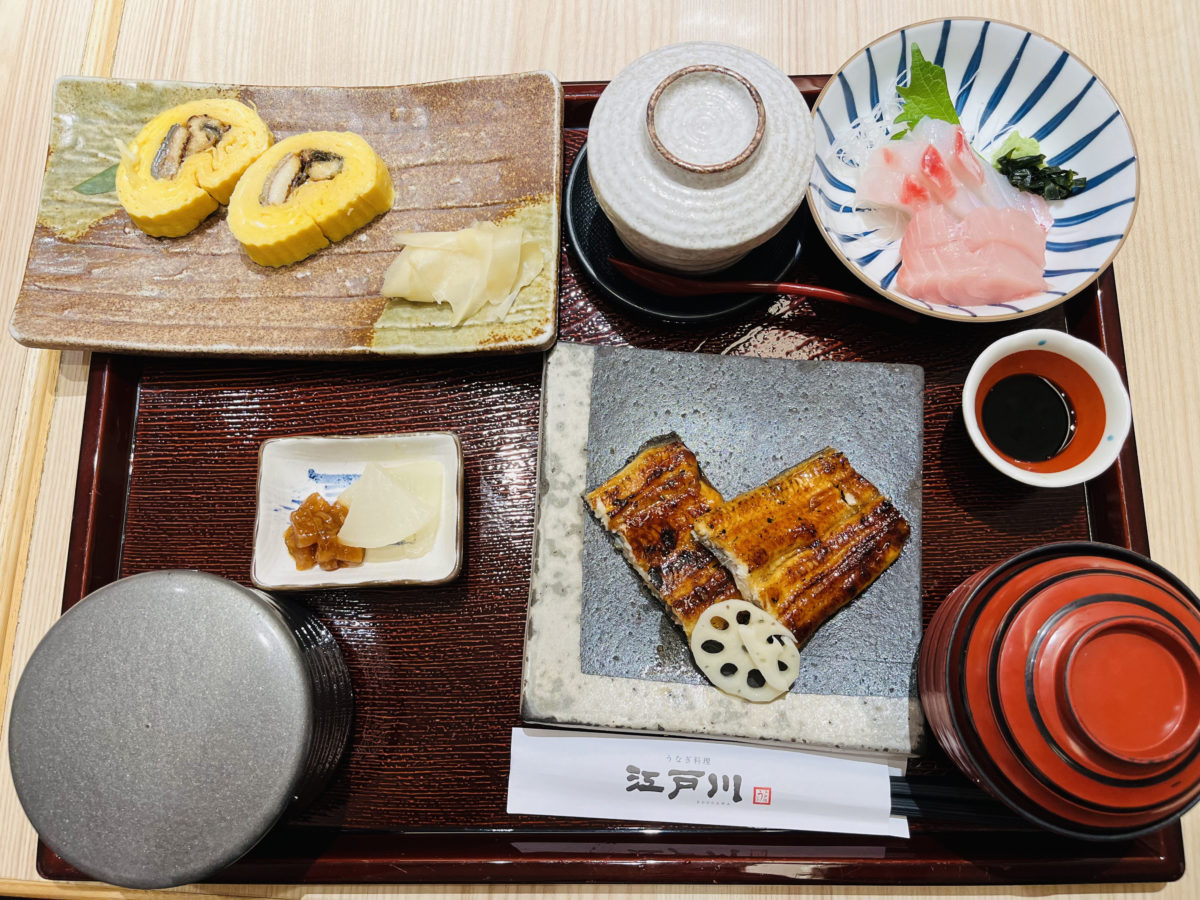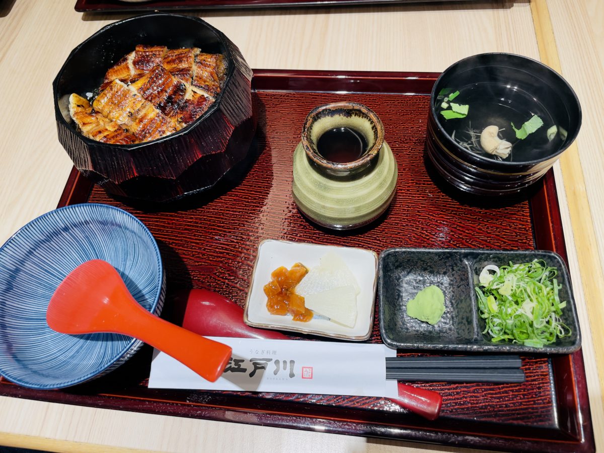 因為太想念鰻魚飯的關係,本次跟朋友前往的是來自日本近鐵集團的《鰻料理江戶川》,位於台北中山站的六條通附近台灣第一間分店。《鰻料理江戶川》是以東京風味(江戶燒)作為料理,鰻魚從背部切開之後,不調味直接烘烤後蒸過,去除油脂後再進行醬汁與烘烤。