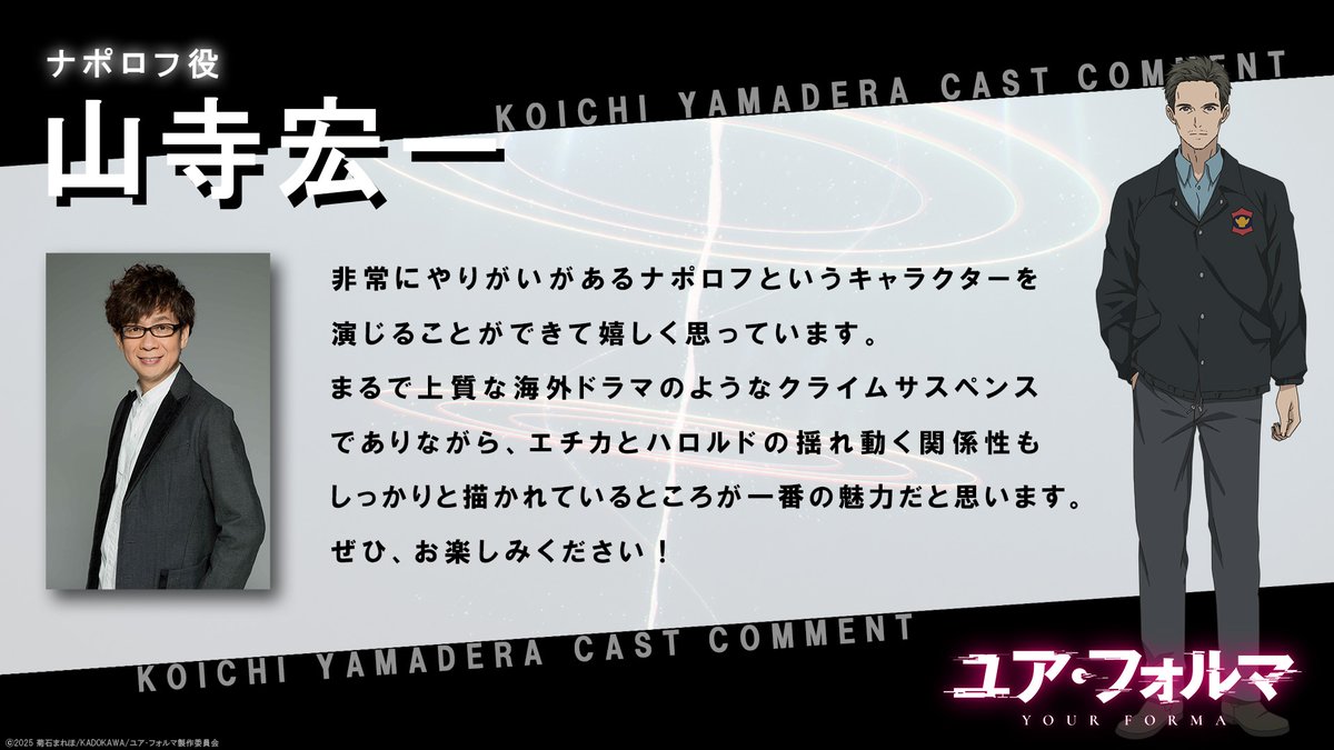 《記憶縫線 YOUR FORMA》(ユア・フォルマ) 動畫將於 2025年4月2日播出,公開第2彈正式宣傳PV、片尾曲資訊,並公布新角色與聲優,包括山寺宏一、杉田智和等聲優。